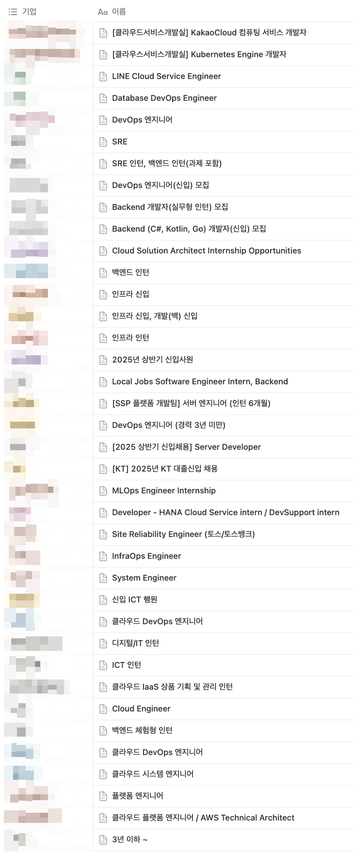 이때부터는 나름의 기준을 가지고 인턴이든 신입이든 써보자고 생각하고 노션에다가 채용공고가 뜨는 기업들을 정리하기 시작했다.