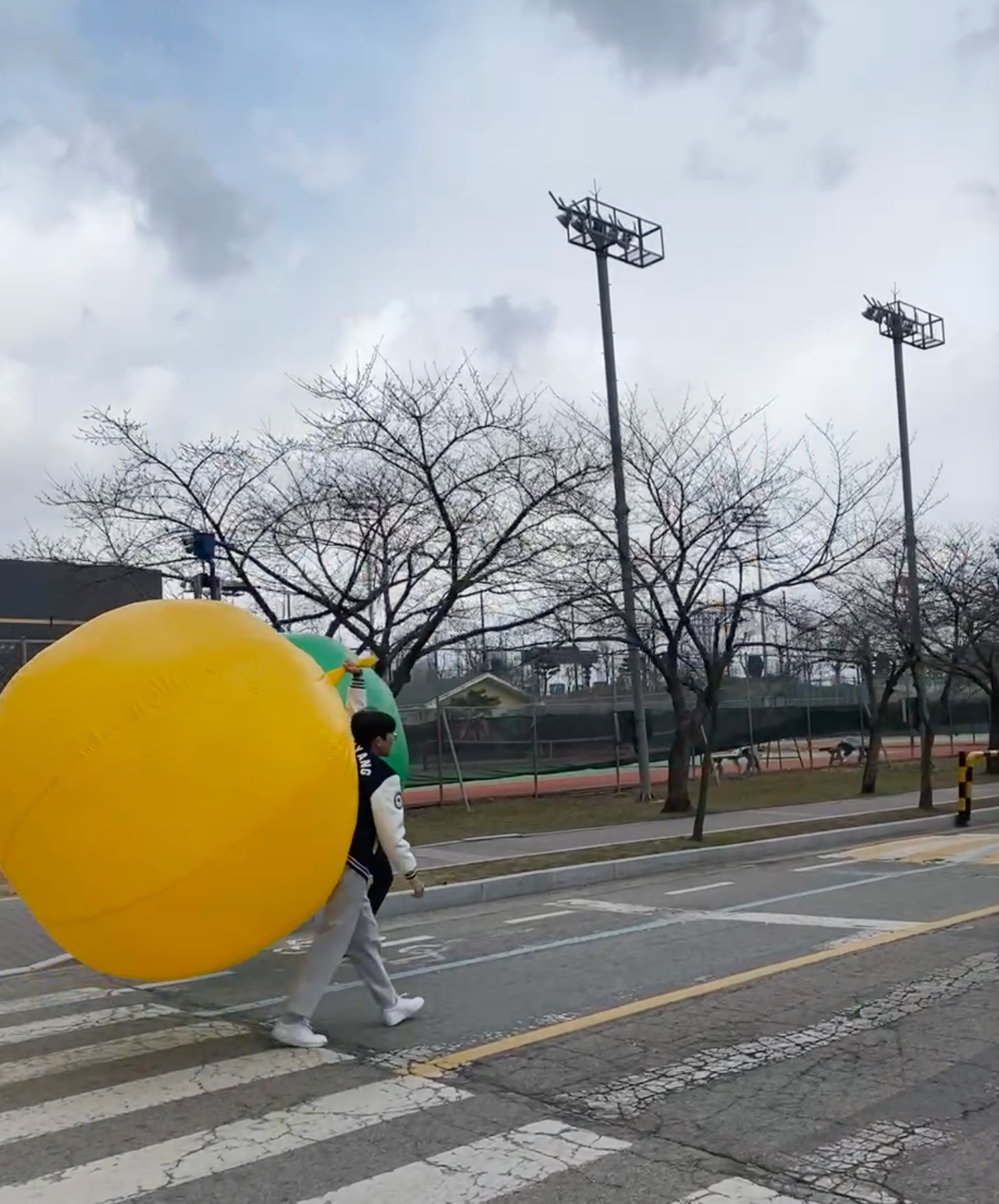 그리고 멘토링 활동 체육대회하겠다고 아래 사진의 큰 공을 멘토들끼리 들고 가는데 참,,,, 저 날 다들 고생 많았더라.