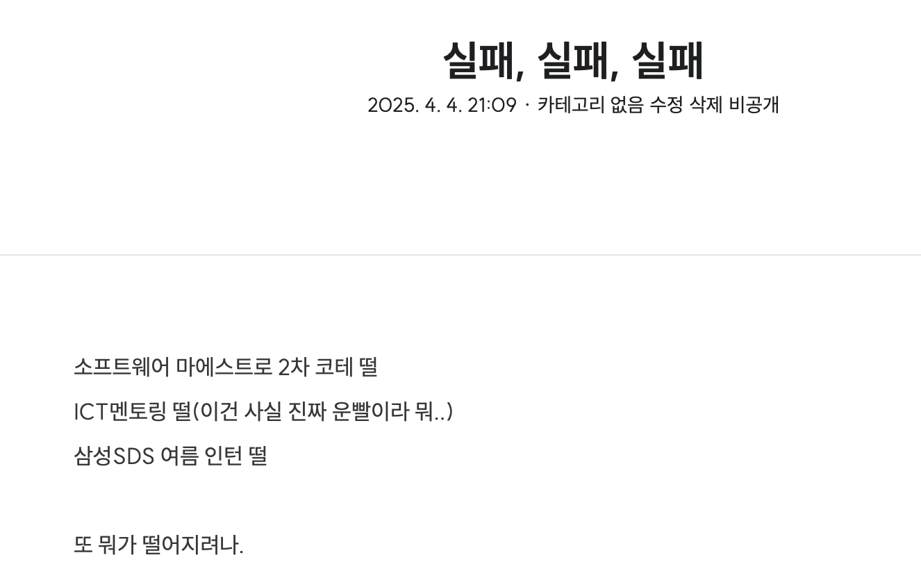 3월 중순쯤은 참 힘들었다. 소마 2차 코테 떨.... 커트라인 문제까지는 테케를 맞은 거 같은데 정답은 아니었나 보다. 군대 마지막 휴가를 투자한 결과가 면접도 가보지 못했다는 게 참,,,